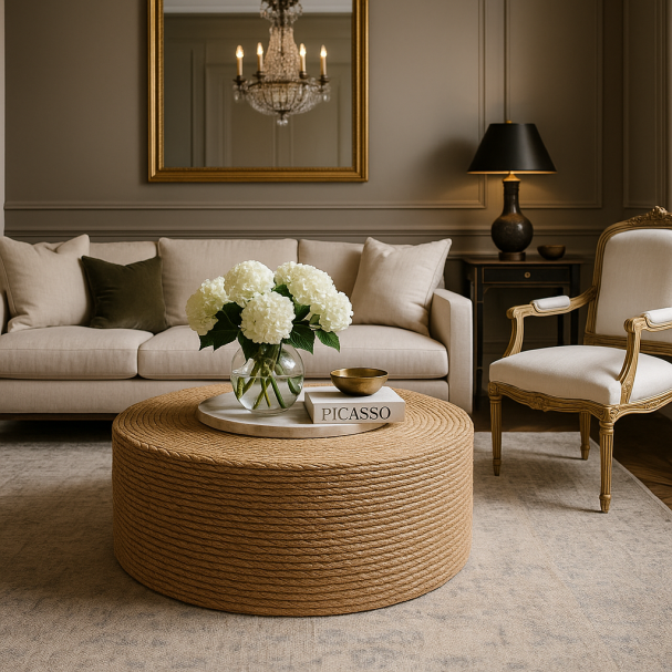 The Haven is a bold, oversized piece built entirely by hand from the ground up. Crafted using raw manila rope and rich in texture, it doubles as both a coffee table and extra seating, adding structure and depth to any space.